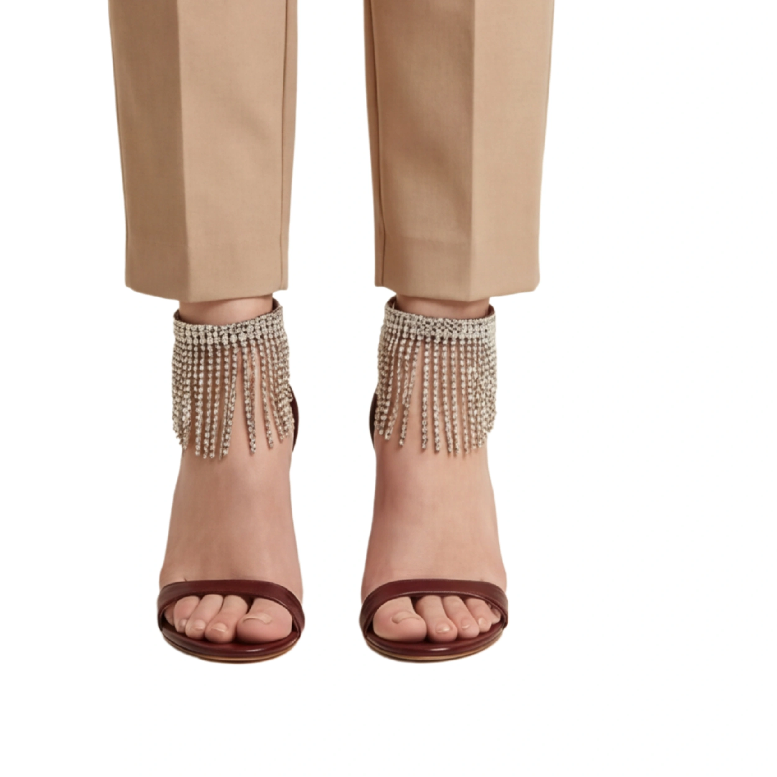 Bordeaux Pavé Fringe Sandals