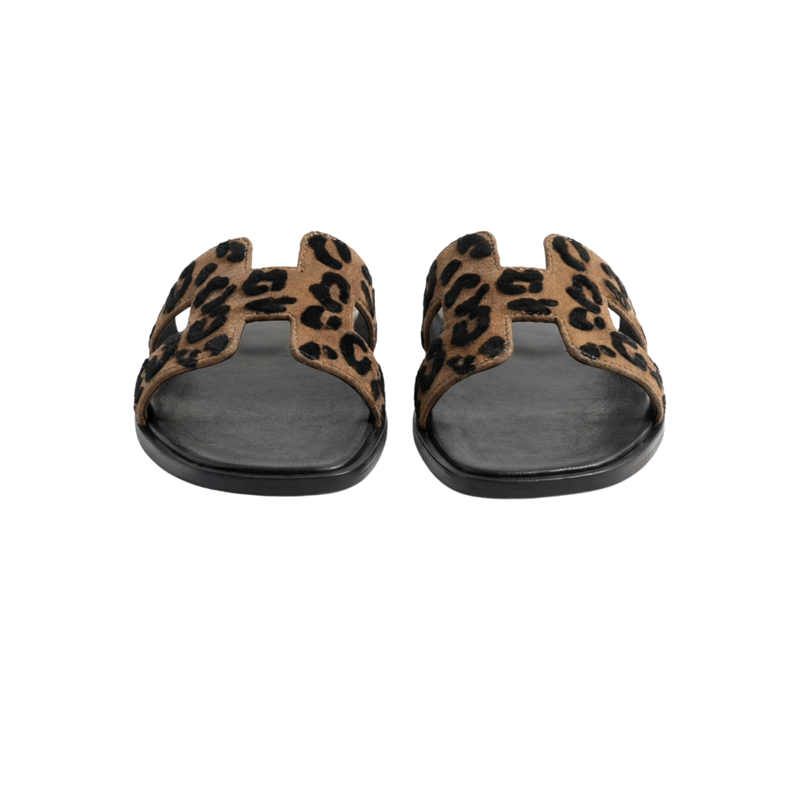 Make a bold statement with the Brian Bailey Leopard Print Slides, a perfect fusion of wild pattern and refined design. These sandals feature the signature “H” strap silhouette rendered in a soft, textured leopard print that adds an instant pop of personality to any outfit. Grounded by a sleek, all-black contoured footbed, these slides offer a modern, sophisticated edge to a classic animal print.