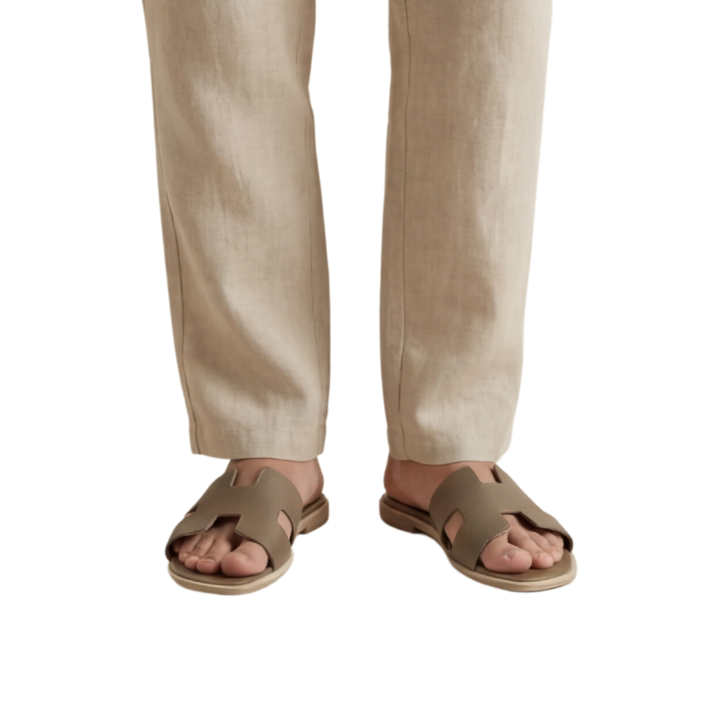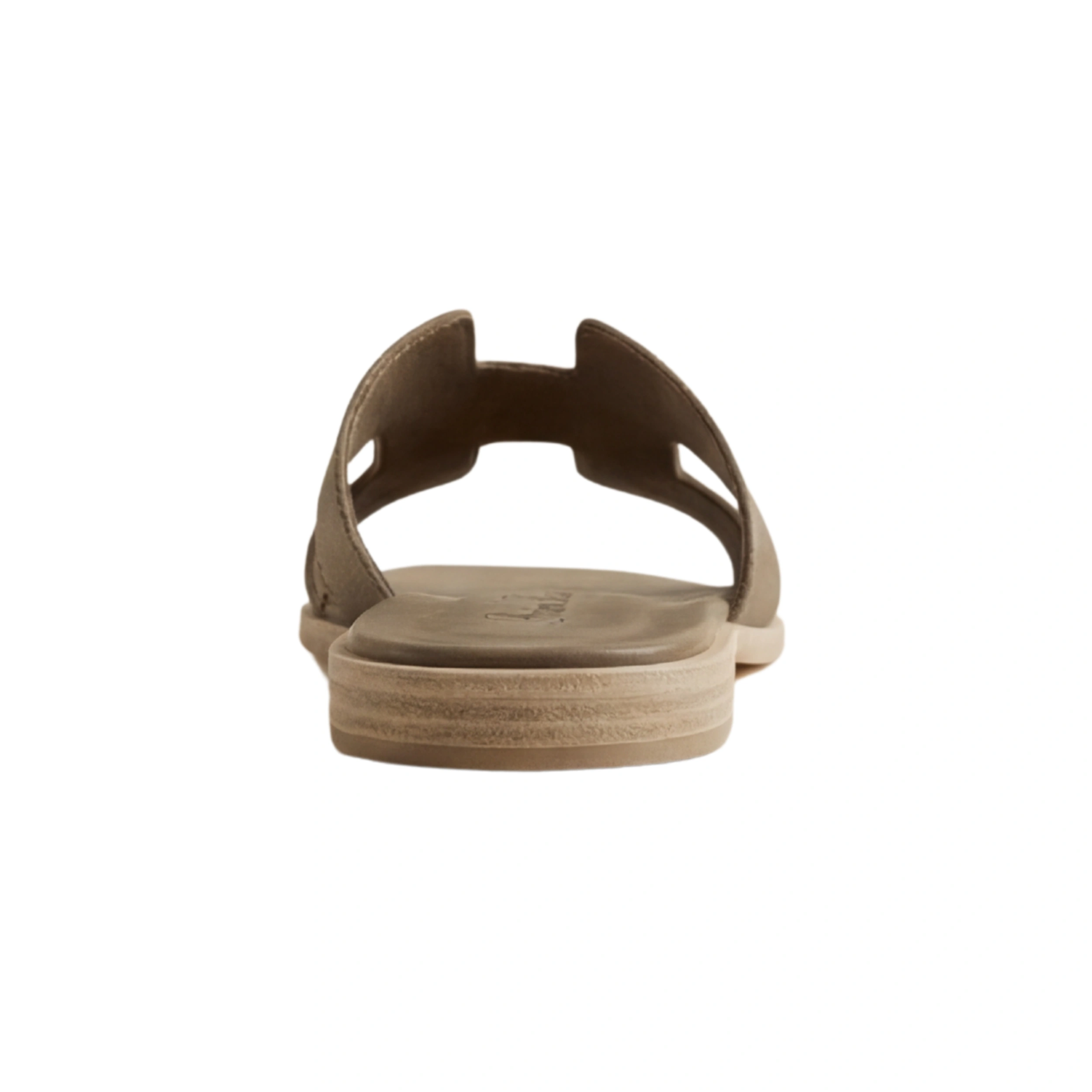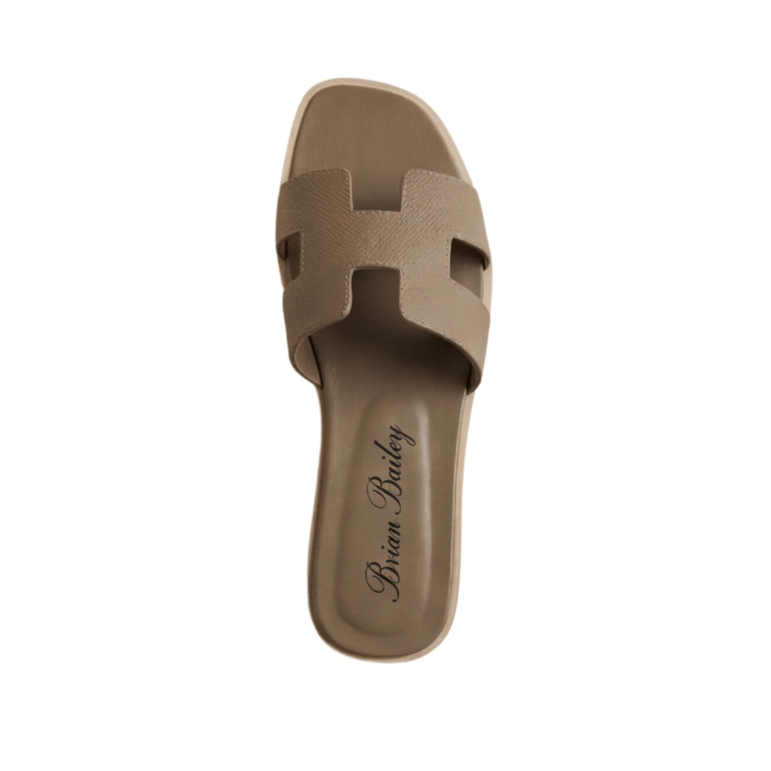 Brian Bailey Taupe Pebbled Leather H Strap Flat Slides