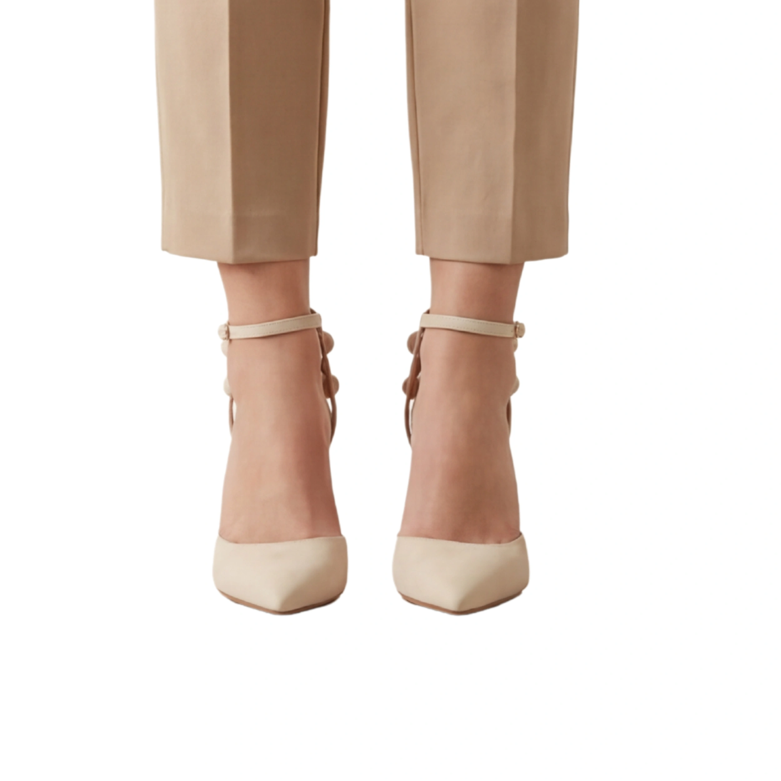 Slender Stiletto Heel: Set on a tall, tapered stiletto heel that reinforces the shoe’s feminine grace and provides a sophisticated lift.