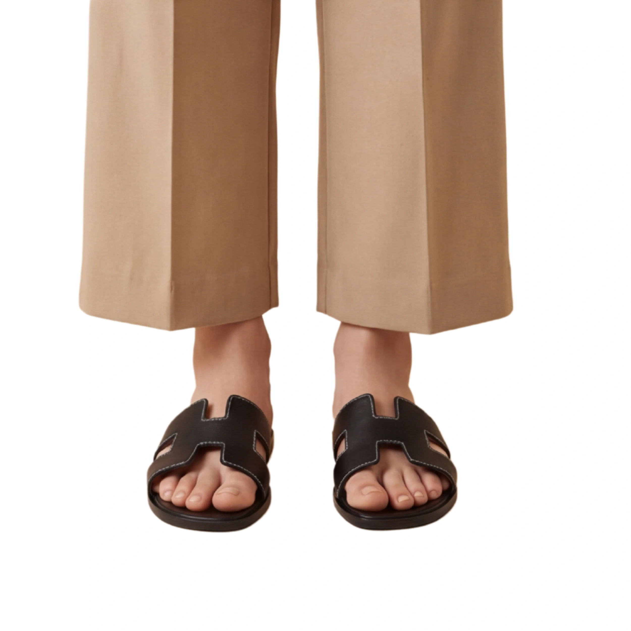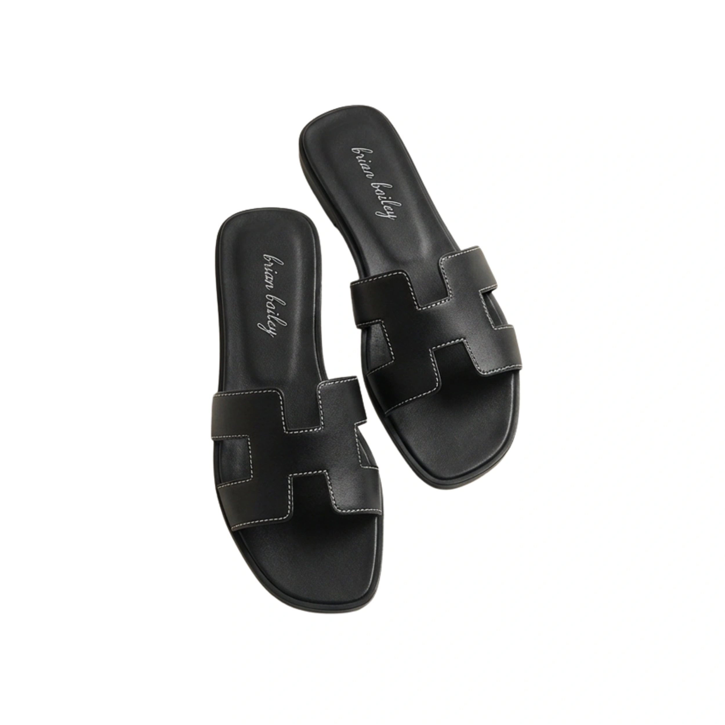 Croc-Embossed Black Leather Slides