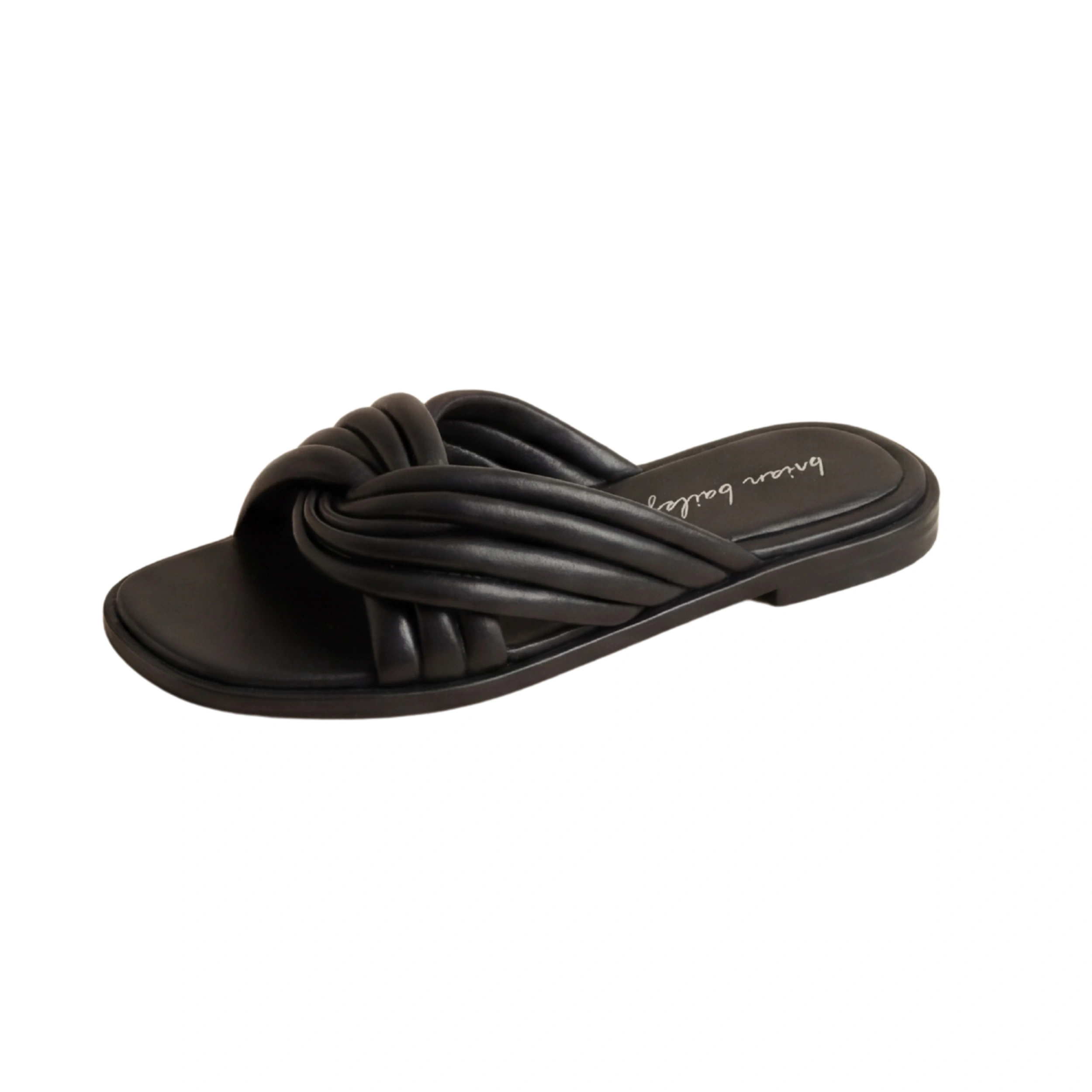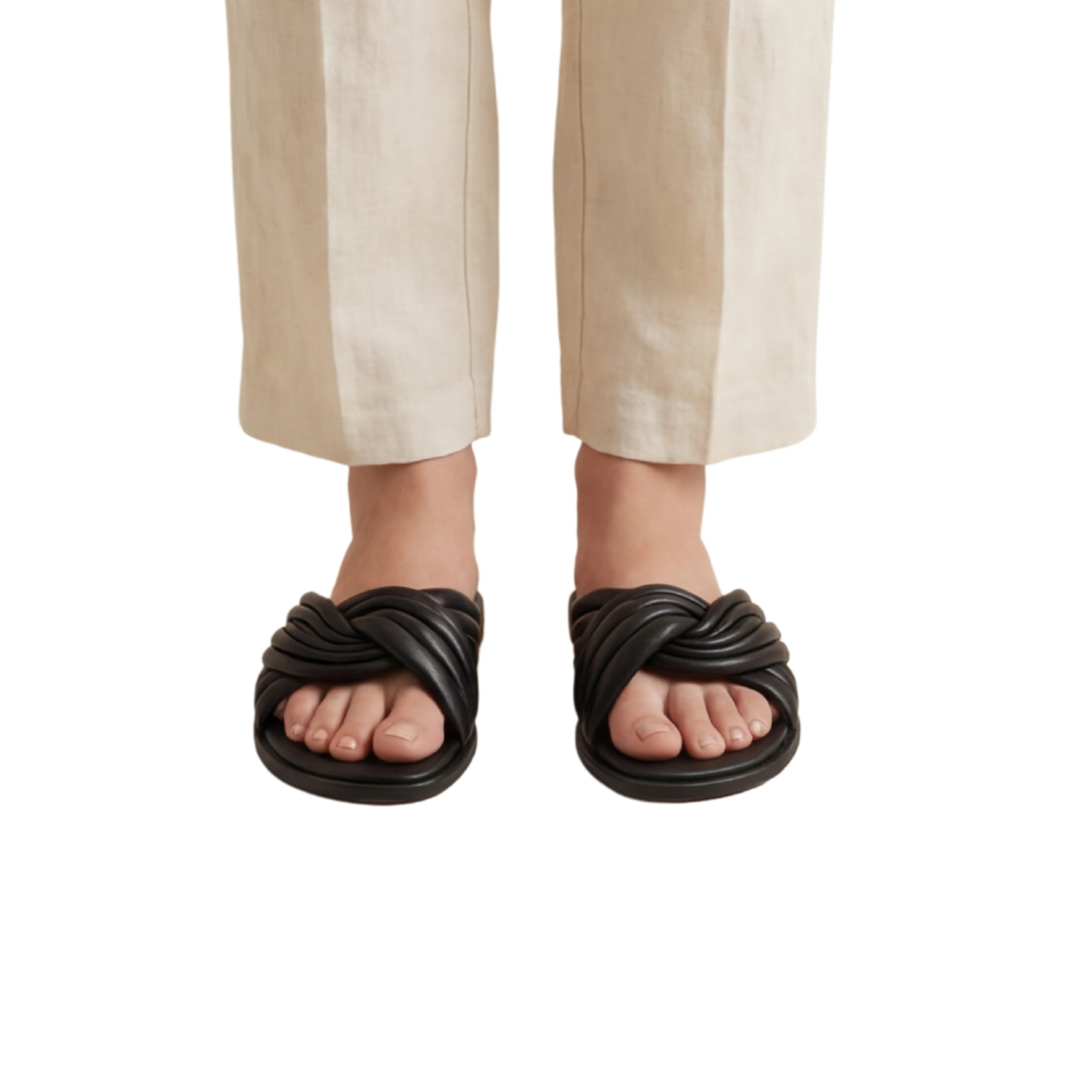 Midnight Noir Padded Twisted Slides are a study in tactile elegance and modern volume. These slides elevate the classic slip-on silhouette with a dramatic, interwoven design that prioritizes both high-fashion impact and plush, everyday comfort.