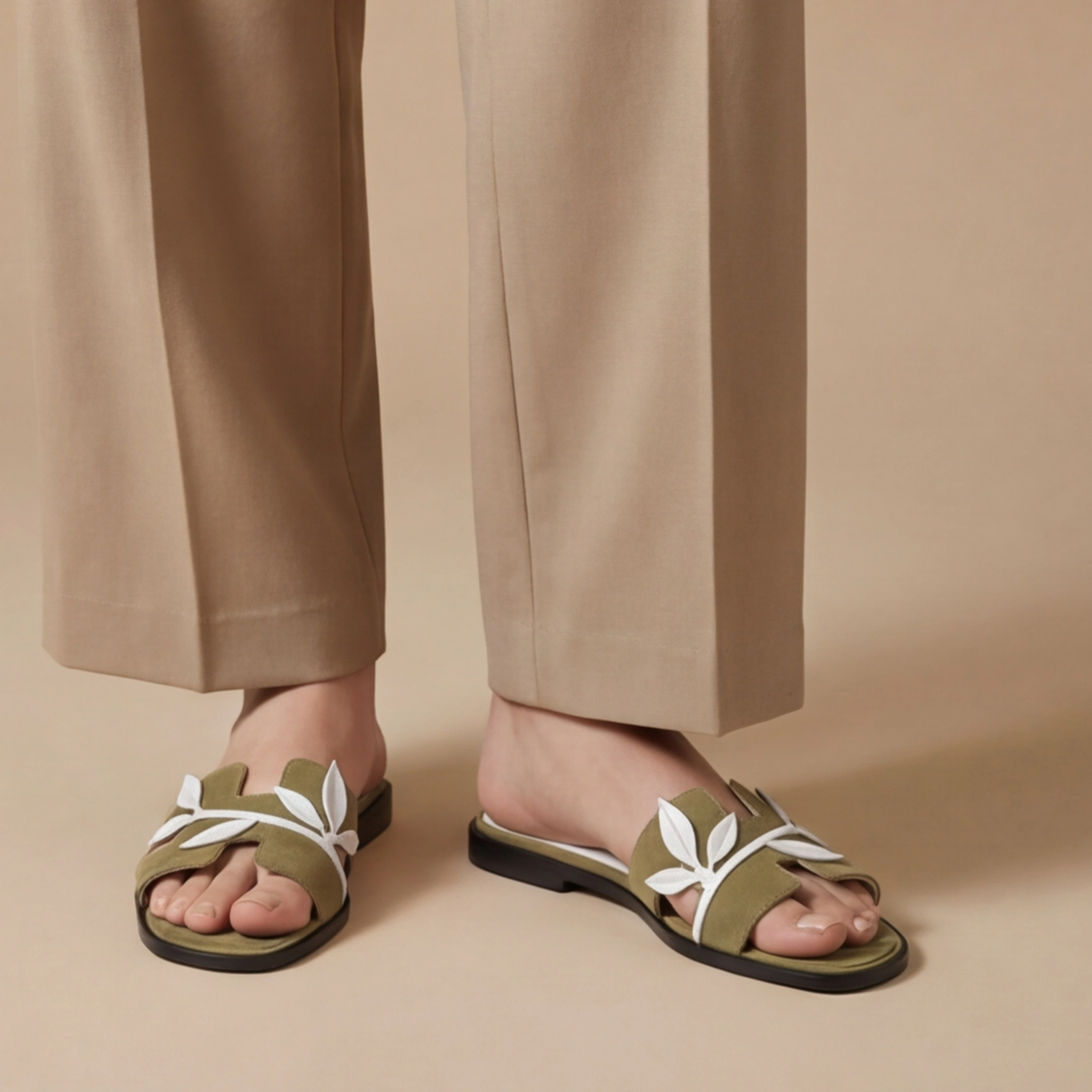The Sage Suede Leaf-Embellished Slides are a masterpiece of soft texture and organic design, offering a calming, earthy alternative to more industrial footwear styles. This silhouette replaces the rigid, polished leather of traditional avant-garde shoes with a velvety, matte finish that feels both premium and natural.